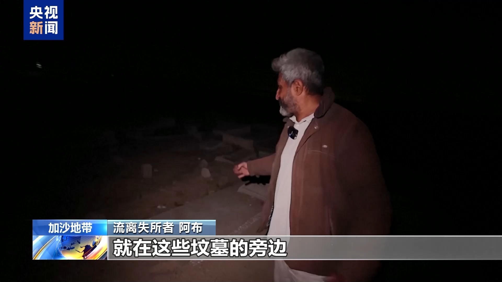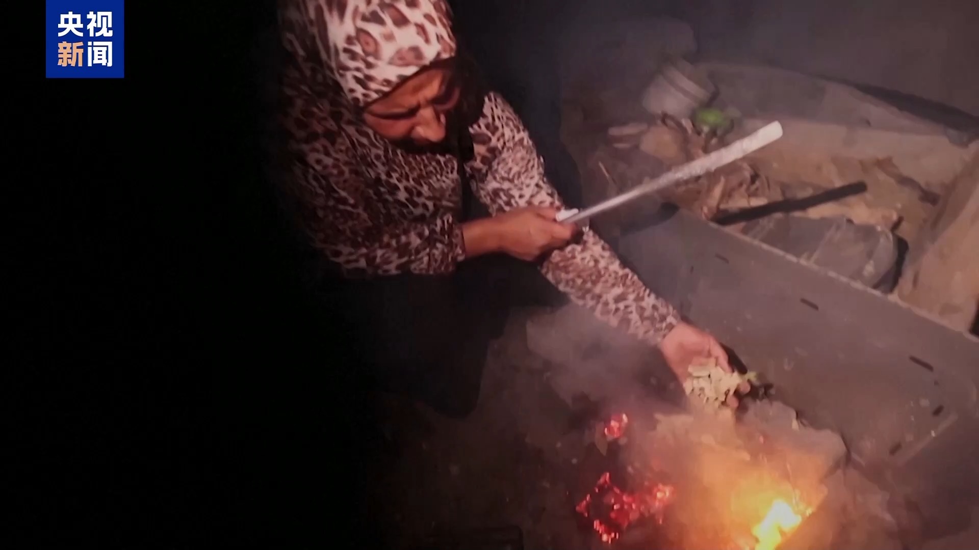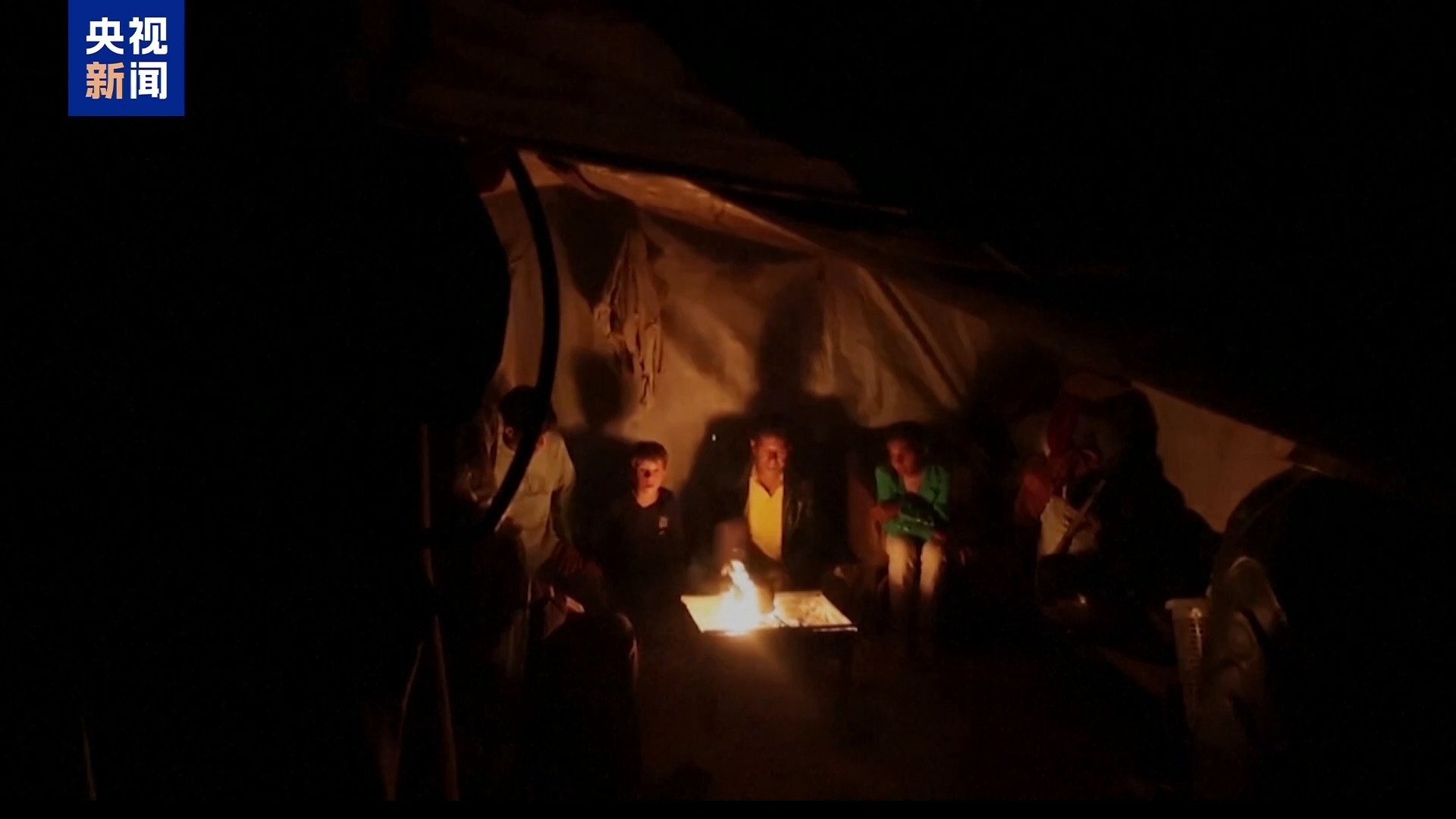由于频繁的被迫流离失所,生活在加沙地带南部的阿布和加达夫妇如今带着他们的几个孩子露宿在一片墓地里。这里没有燃料和电力,只有他们两人支起的简陋的帐篷。天气寒冷,全家人只能靠明火和毛毯取暖。