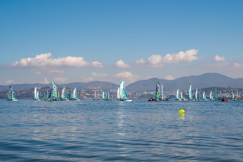 10月26日,参加中国万水千帆赛(大理站)比赛的船只在比赛中。当日,2024中国户外运动产业大会正式启幕。新华社记者 彭奕凯 摄