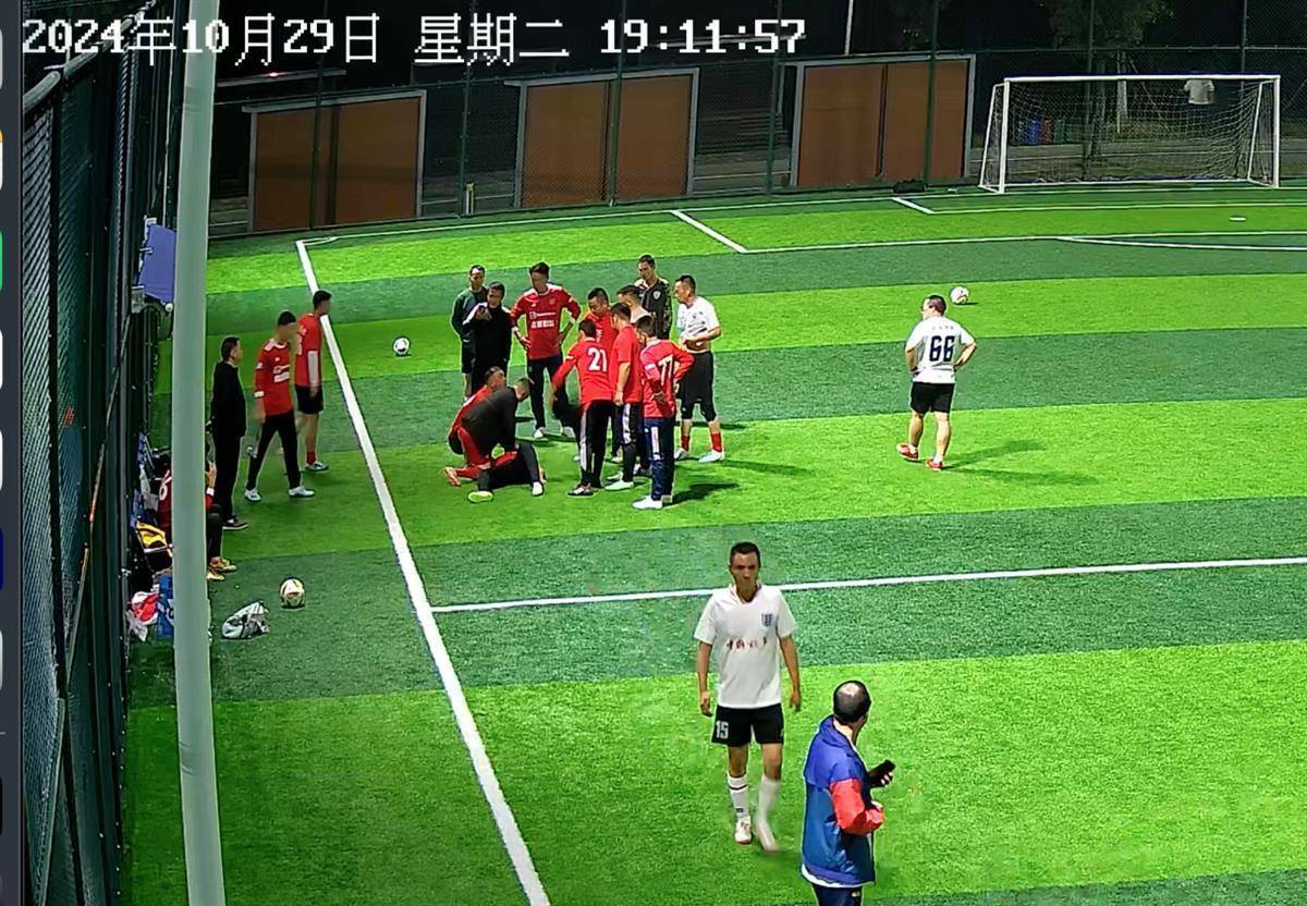 这是一群业余足球好爱者,组成了一支名叫花鹿台茶业的足球队,固定在周二比赛。当晚7时,开场约10分钟后,身着15号球衣的张某走下球场,提议换人。“没吃晚饭,白天上班也比较累,有一阵子没踢了,感到好疲倦。”此时张某还和队员开着玩笑。他拿了一瓶水边喝边坐到场边休息。