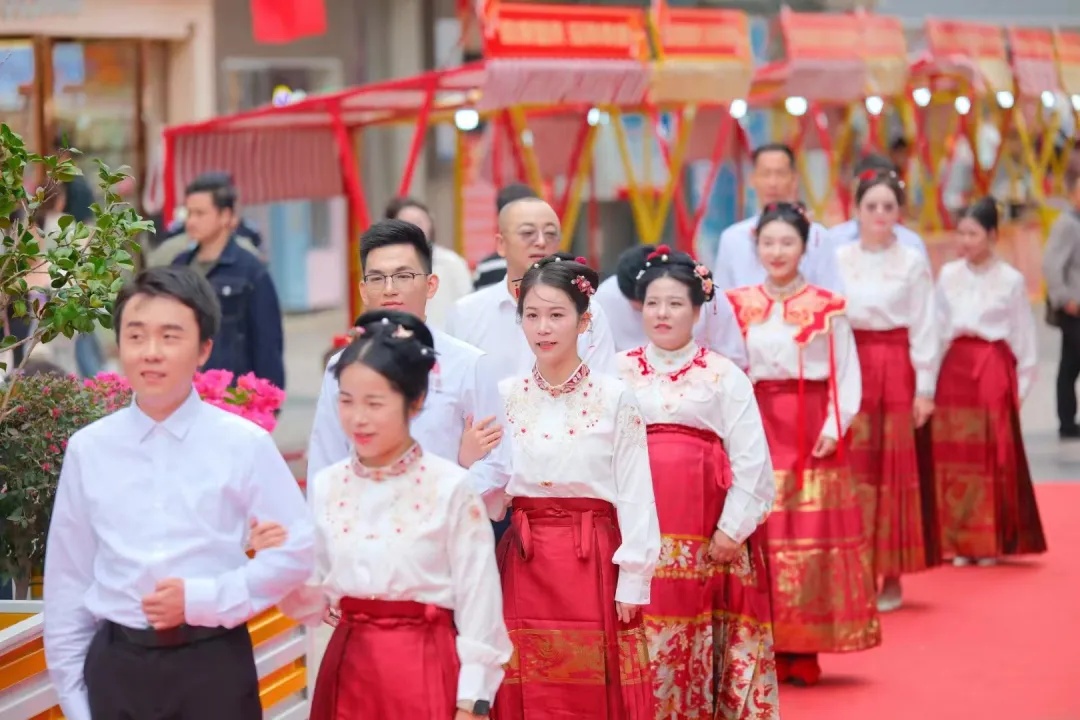 10月12日上午,竹山县“大爱竹山 幸福一生”移风易俗集体婚礼在竹山县桃花源街区女娲广场举行。9对新人身穿中式婚服,定下了“白头之约”,永结百年之好。