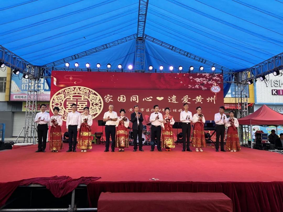 10月1日上午,“家国同心 遗爱黄州”黄冈市区2024年集体婚礼在奥康商业步行街举行。六对新人身着中式礼服,在礼官的引领下,完成新人交换信物、宣读誓言等婚礼典礼仪式,在大家的见证下举行了一场温馨浪漫、简约热烈的集体婚礼。