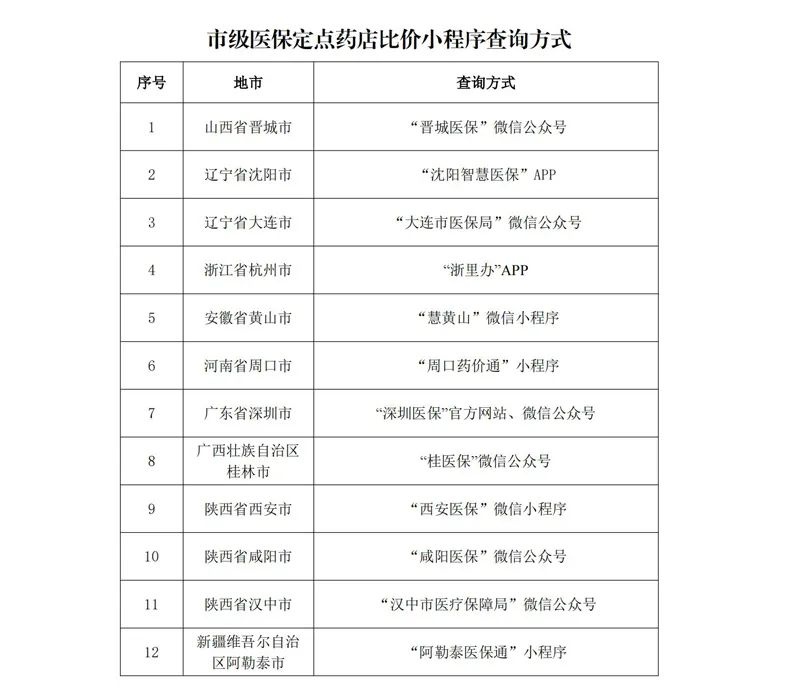 今年7月份以来,已有19个省(自治区、直辖市)以及浙江杭州等地市陆续推出覆盖全省或全市的定点药店比价小程序,群众可通过当地医保局App、微信小程序等途径获取药品比价。