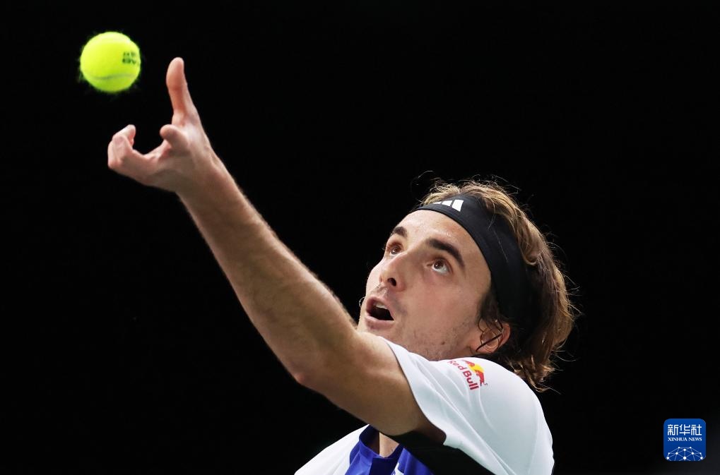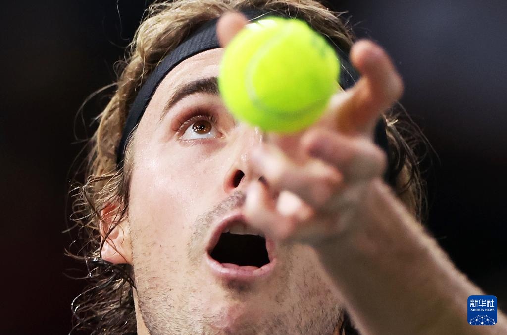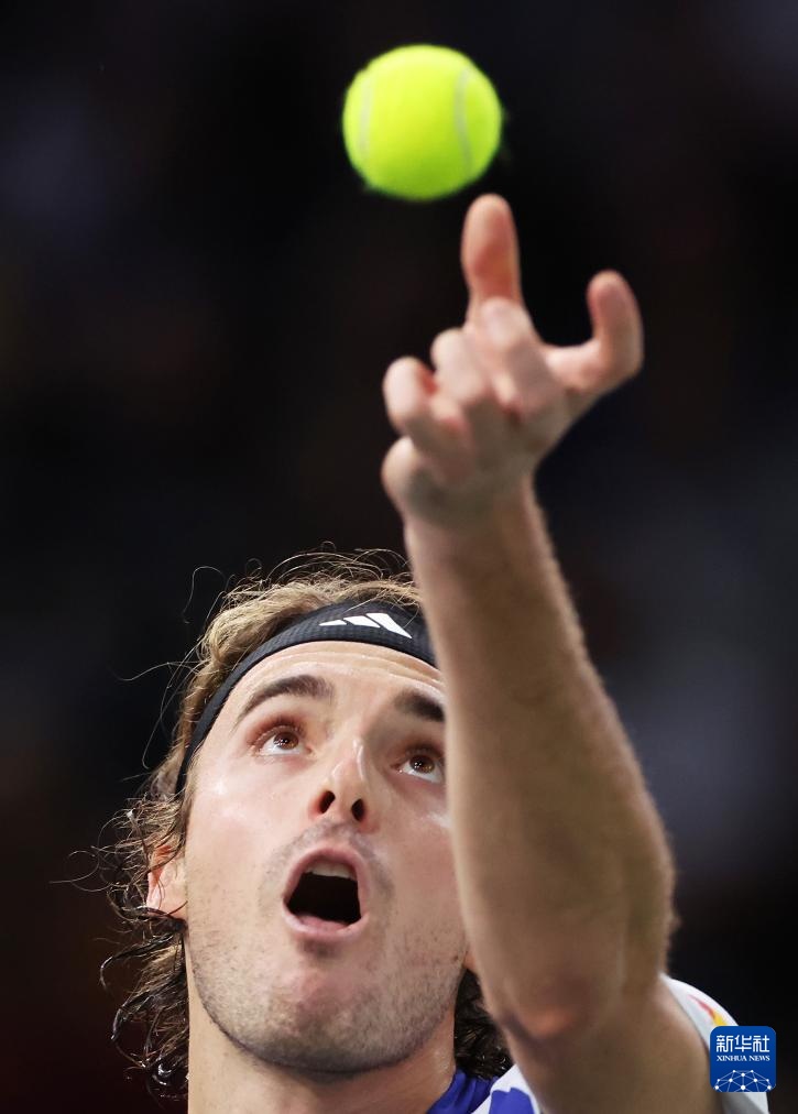 10月31日,齐齐帕斯在比赛中发球。