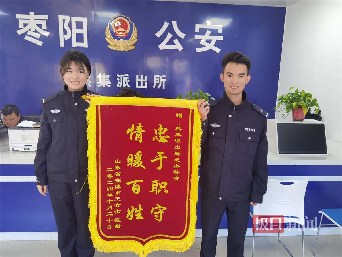 10月30日,湖北省枣阳市公安局熊集派出所收到一个外省的快递,其内放着一面印有“忠于职守、情暖百姓”的锦旗和一封感谢信。