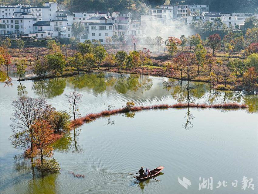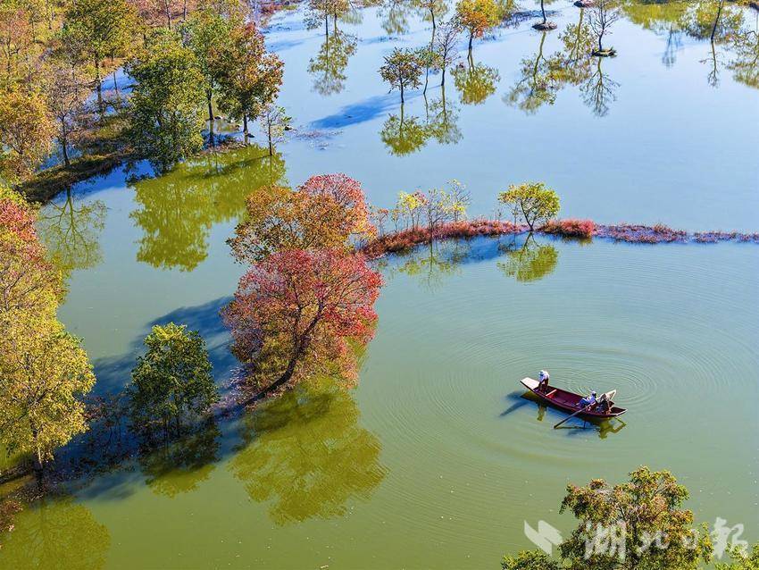 10月31日,罗田县河西畈村水上红叶景区乌桕红叶迎来最佳观赏期,赤橙黄绿青蓝紫点染美丽乡村,吸引了全国各地游客纷至沓来观赏金秋美景。