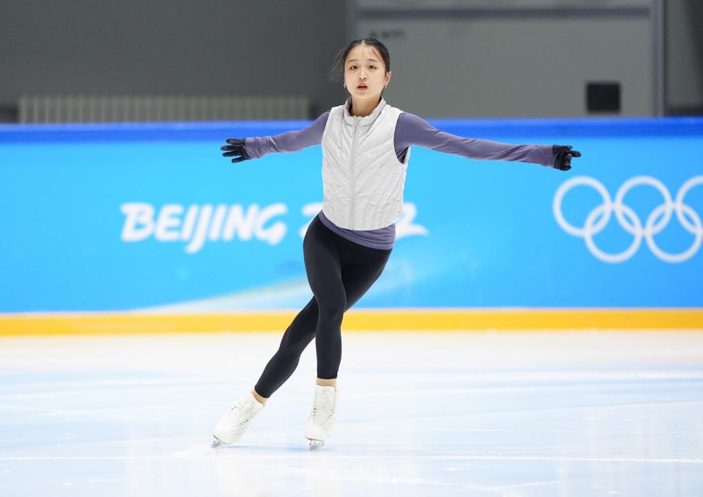 11月1日,女子单人滑运动员朱易在训练中。新华社记者 许雅楠 摄