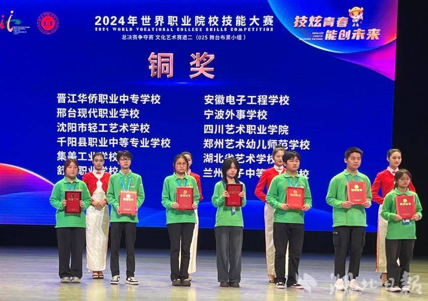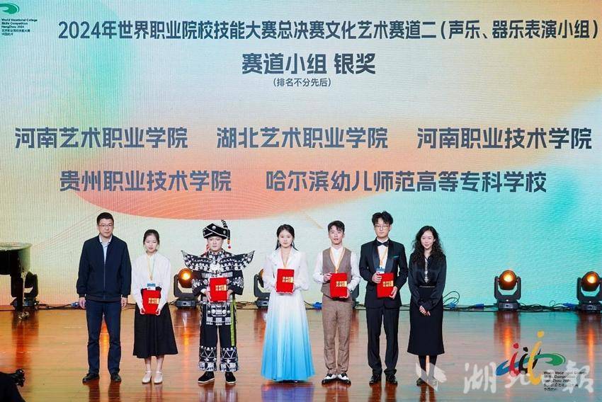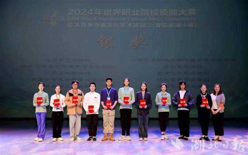 湖北日报讯(记者张歆、通讯员鄂文旅)10月24日至31日,2024年世界职业院校技能大赛总决赛举办,湖北艺术职业学院在总决赛中获得2银1铜。其中,该校音乐学院代表队获得文化艺术赛道二(声乐、器乐表演小组)银奖,该校中职教学部代表队获得文化艺术赛道二(舞蹈表演小组)银奖、文化艺术赛道二(舞台布景小组)铜奖。