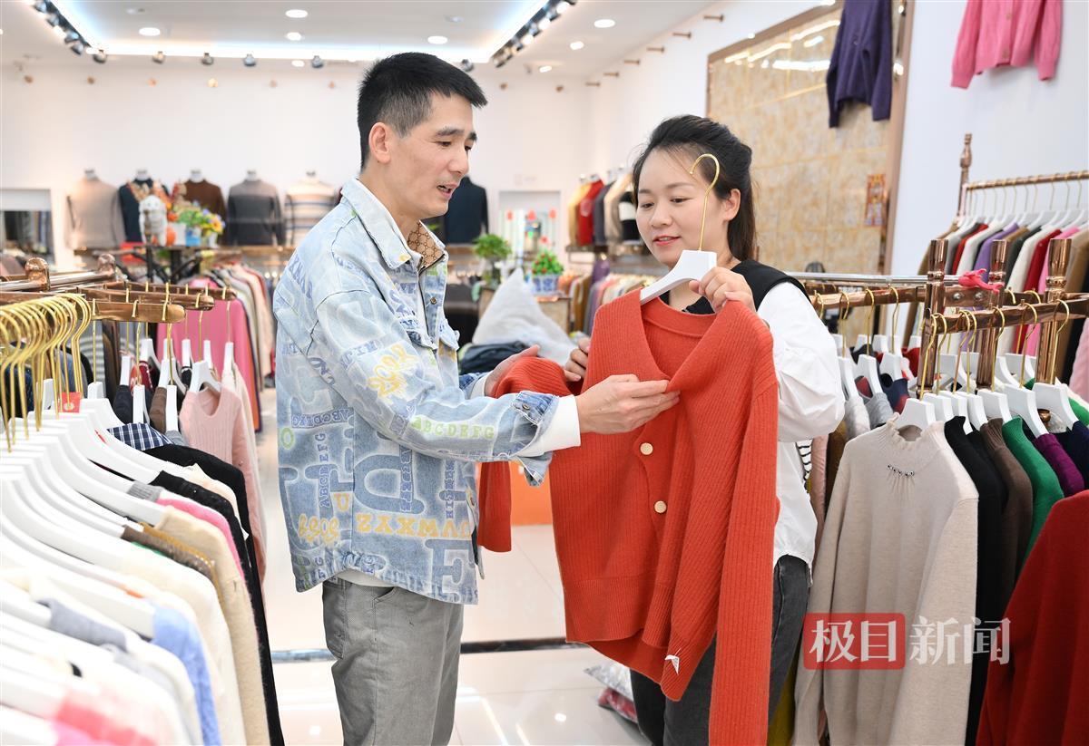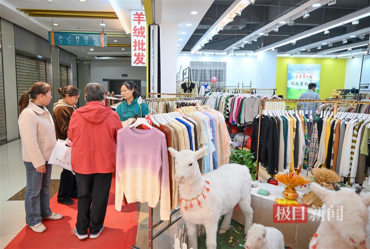“我现在在汉口北国际贸易城有三家店铺,总面积约800平方米,全部都是经营羊绒服装,包括高档、中档和大众消费不同档次的产品,有批发也有零售。”俞建良向极目新闻记者介绍,最开始他在汉口北国际贸易城的鞋城开了一间店,只有100多平方米,主要做批发生意。