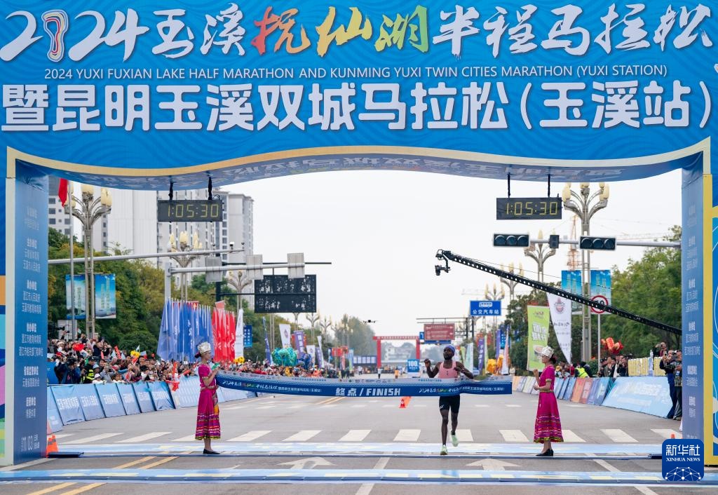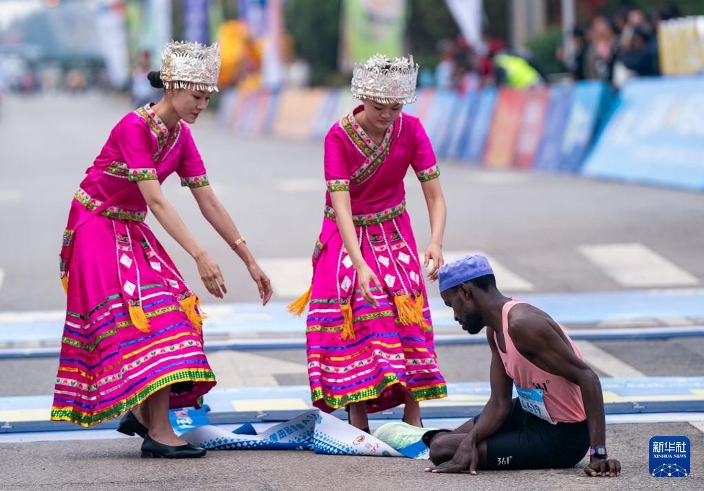11月3日,来自肯尼亚的选手恩敦古在比赛中冲过终点后倒地。最终,他获得半程马拉松男子组冠军。