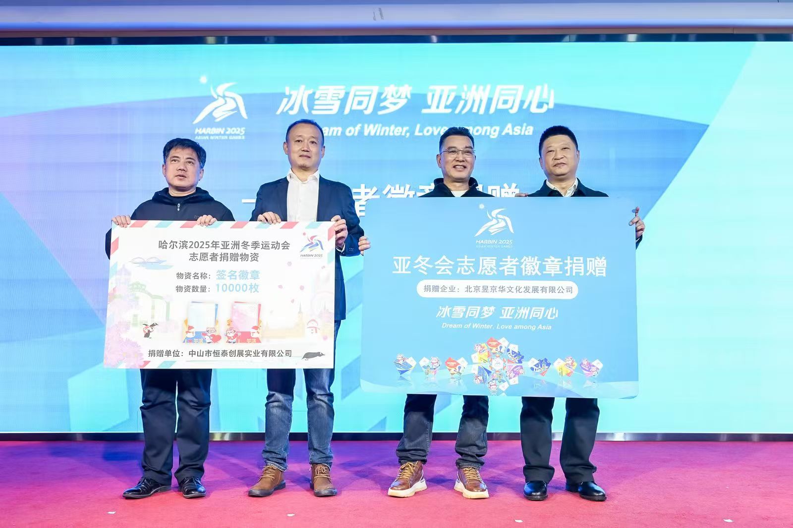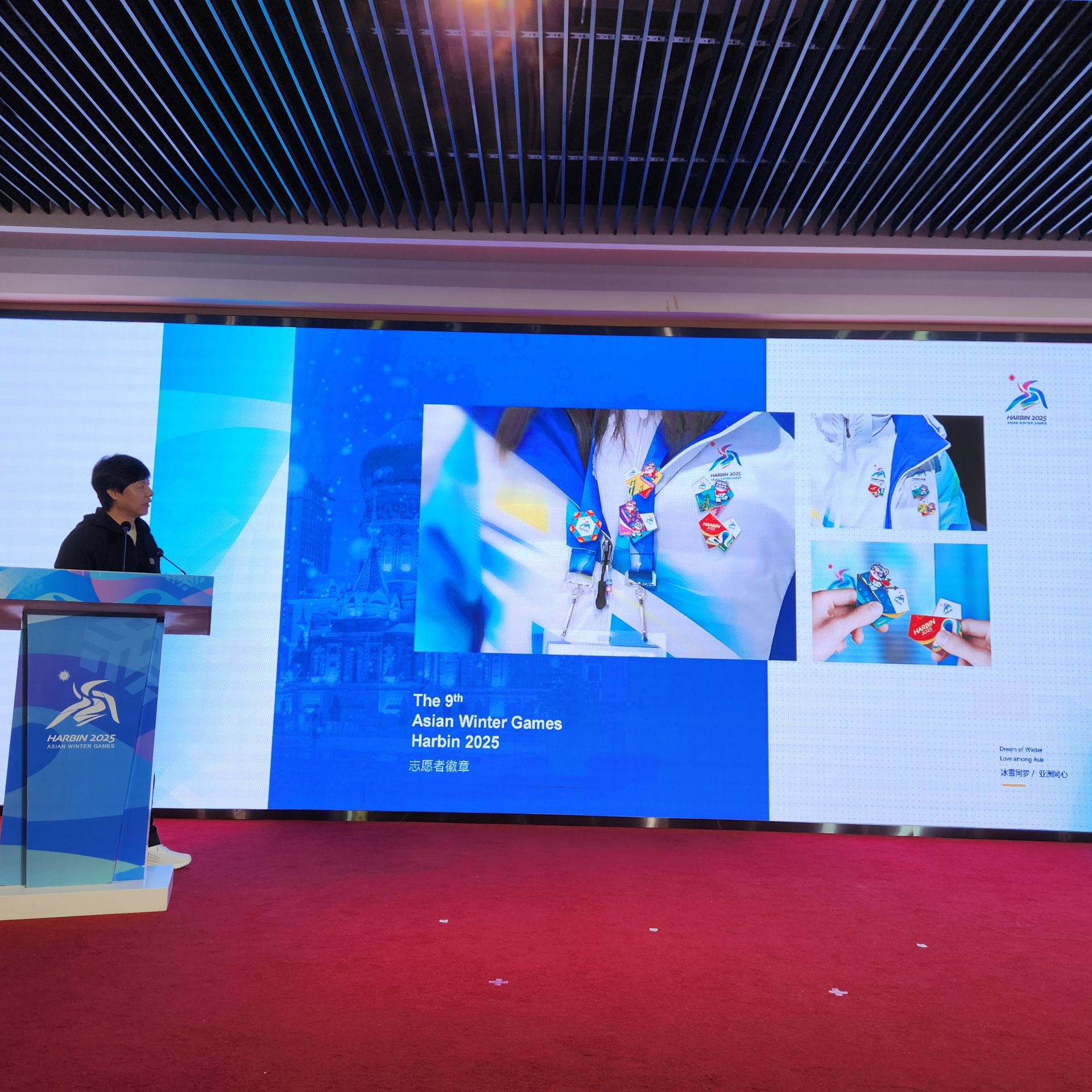 活动中,黑龙江省委社会工作部五处处长赵良韬介绍了举办大赛、推出作品的背景、意义和取得成绩,志愿者徽章金奖作品《心心相映》设计师、黑龙江工商学院邓国梁老师介绍了作品的创作理念和设计过程,黑龙江省委社会工作部、第九届亚冬会人力资源和志愿服务部有关人员在活动现场将志愿者徽章赠送给亚冬会志愿者代表。北京昱京华文化发展有限公司、中山市恒泰创展实业有限公司,各向黑龙江省亚冬会志愿者捐赠志愿者徽章10000枚,用以表彰在亚冬会期间表现突出的志愿者,持续加大对亚冬会志愿者的激励褒奖回馈,增强亚冬会志愿者的获得感、幸福感、成就感。