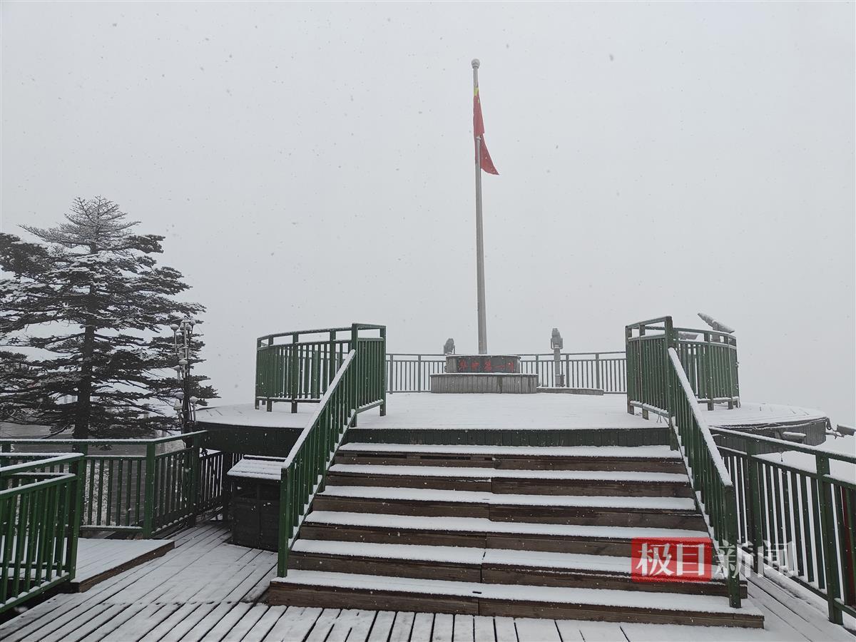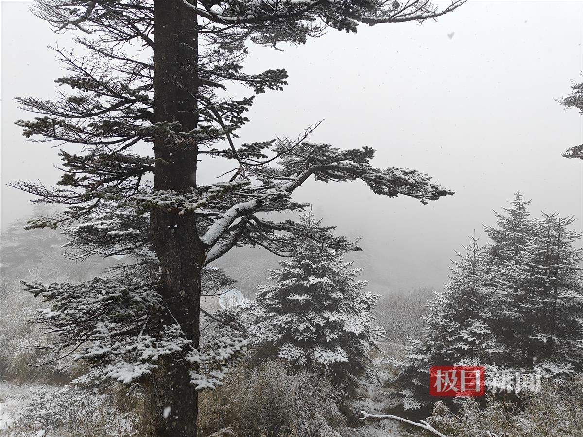 受高空冷空气影响,11月3日午夜,湖北神农架神农顶景区雪花悄然而至,这是神农架神农顶景区迎来今年入秋以来的首场降雪天气。
