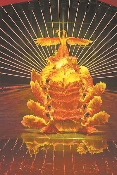 由著名艺术家杨丽萍编导的舞蹈《凤鸣朝阳》,是杨丽萍最新作品、大型史诗舞台剧《荆楚映象》中最华彩的片段之一。该剧自今年7月在武汉首演后反响热烈,目前已在全国演出多场。
