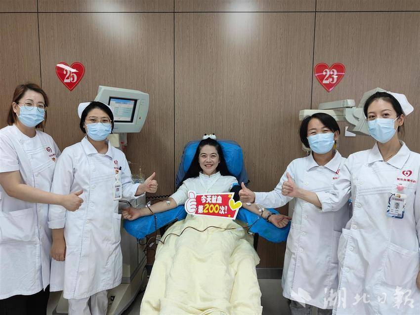 湖北日报讯(记者曾莉、通讯员肖莉娇)11月4日,在武汉血液中心成分献血科江南分中心,殷红的血液涓涓流向血袋,44岁的陈旋完成了生命中第200次献血。她献的血帮助挽救了370人的生命,今年是她坚持献血的第25年。