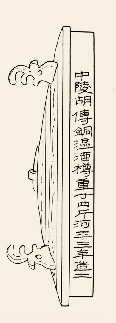“中陵胡傅铜温酒樽重廿四斤河平三年造”