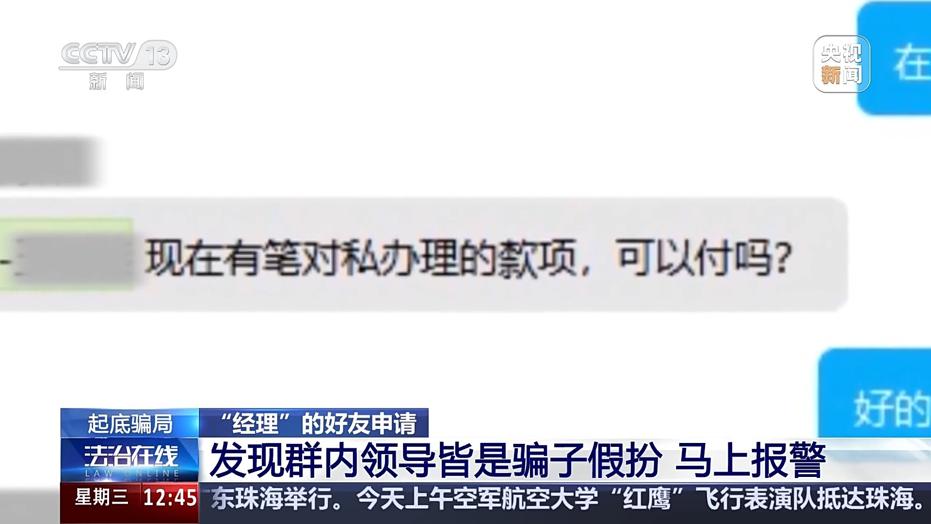 就在王女士觉得异常时,当天中午12点40分,企业总经理在发现账户变动后也找到了王女士,此时的王女士才意识到,原来先前群里的所谓总经理、厂长均是骗子扮演的,她立即报了警。