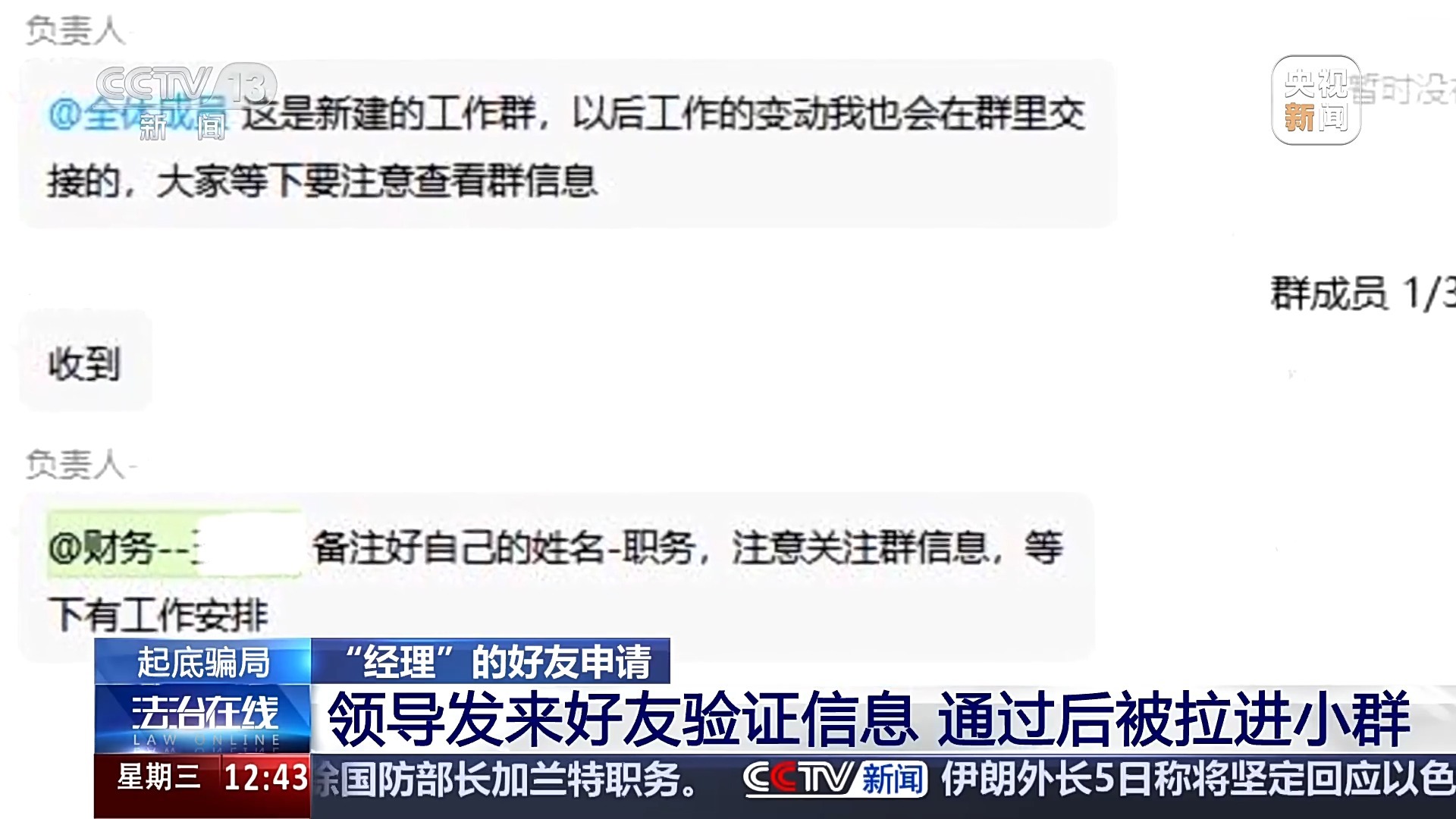王女士是河南新乡一家企业的财务人员,今年8月22日中午,她的社交账号突然收到了企业总经理发来的好友验证信息,企业负责人第一次点对点布置工作,这让王女士倍感重视。在添加上总经理的账号后,对方将她拉进了一个由总经理、厂长和她组成的小群里。