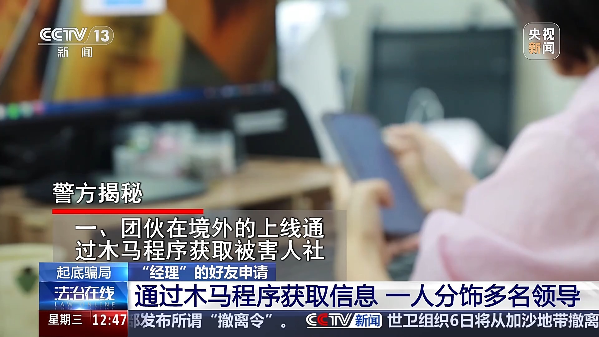 犯罪嫌疑人赵某落网后,根据他提供的线索,警方又将他的同伙张某抓获。在后期的审讯中,两名犯罪嫌疑人对诈骗王女士的犯罪事实供认不讳。据他们供述,作案时,他们首先由团伙在境外的上线通过木马程序获取被害人的社交账号,接下来由犯罪嫌疑人采用拉群的形式用固定话术实施诈骗,而群里的多名所谓领导,往往都是由一人扮演。一旦得逞,承担洗钱角色的赵某和张某会马上登场。
