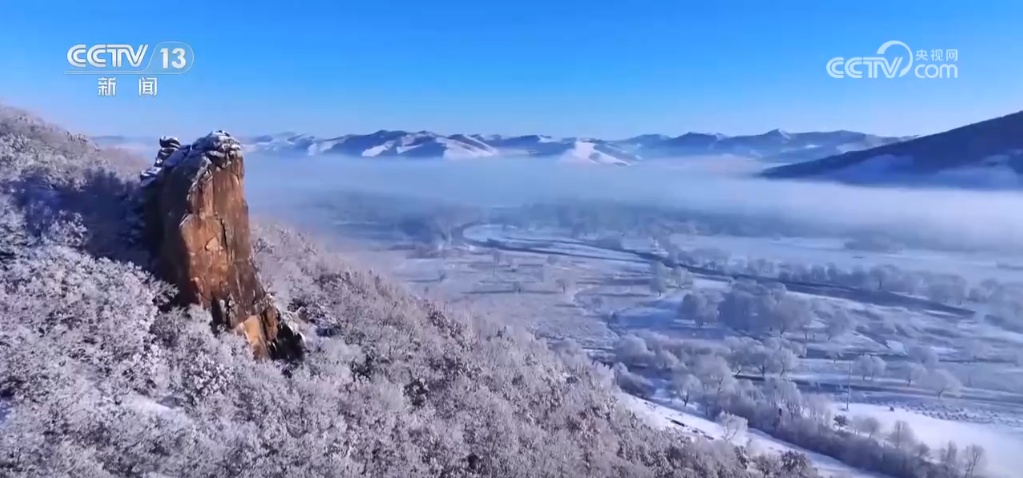 在内蒙古兴安盟的科右前旗,索伦河谷也悄然披上银装,形成了雾凇美景。枝叶间挂着点点白雪,河流冰凌闪闪发光,在两岸雾凇的映衬下,显得更加清澈和灵动。