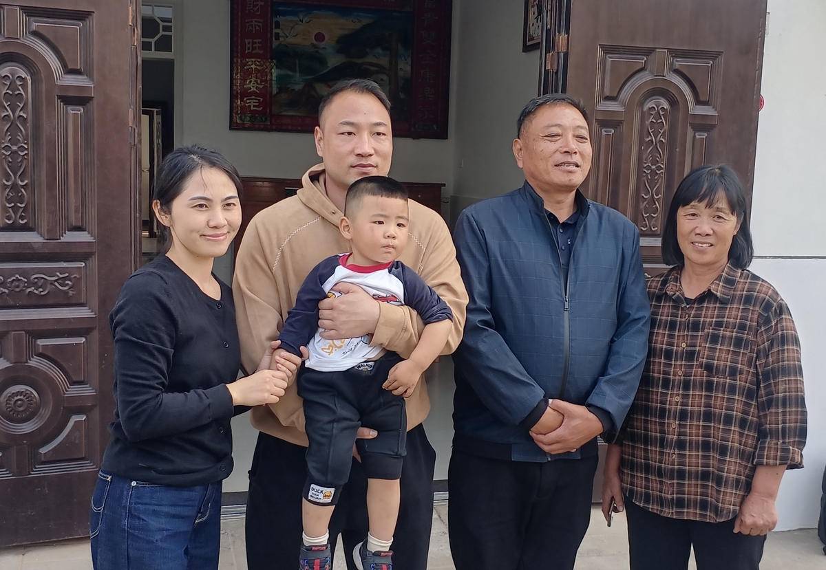11月5日,四邑村村民熊成龙(右二)和妻子张先英(右一)、儿子熊伟(左二)等拍摄全家福。(湖北日报全媒记者 柯皓 摄)