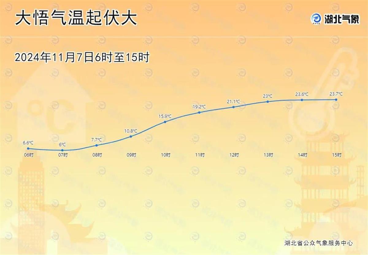 别小瞧秋阳的力量,午后3时,湖北大部地区气温被拉升到18-25℃,比如,大悟温差大,早间6时是6.6℃,午后飞升至23.7℃。