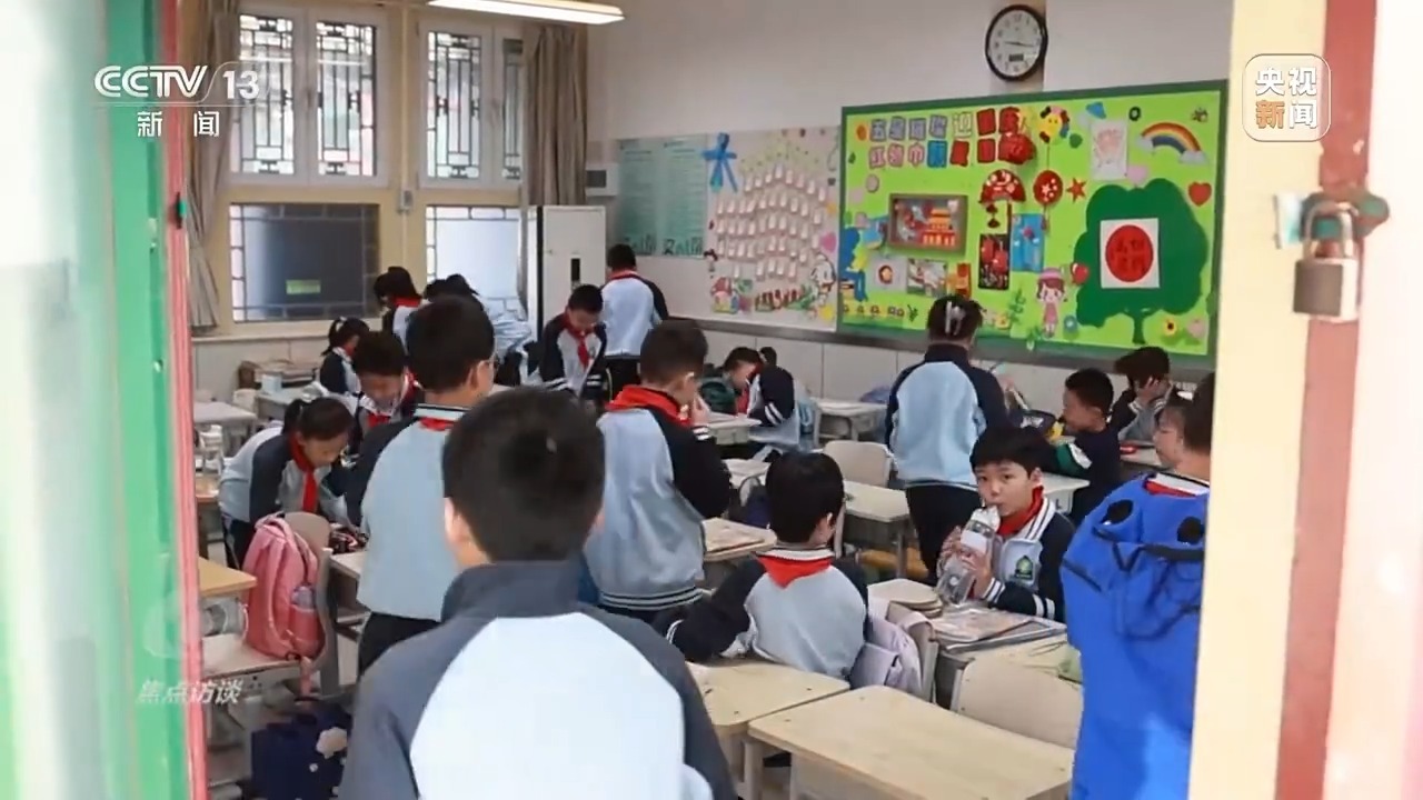 白家庄小学汇景苑校区的15分钟小课间,操场里热热闹闹,教室走廊里也是叽叽喳喳。