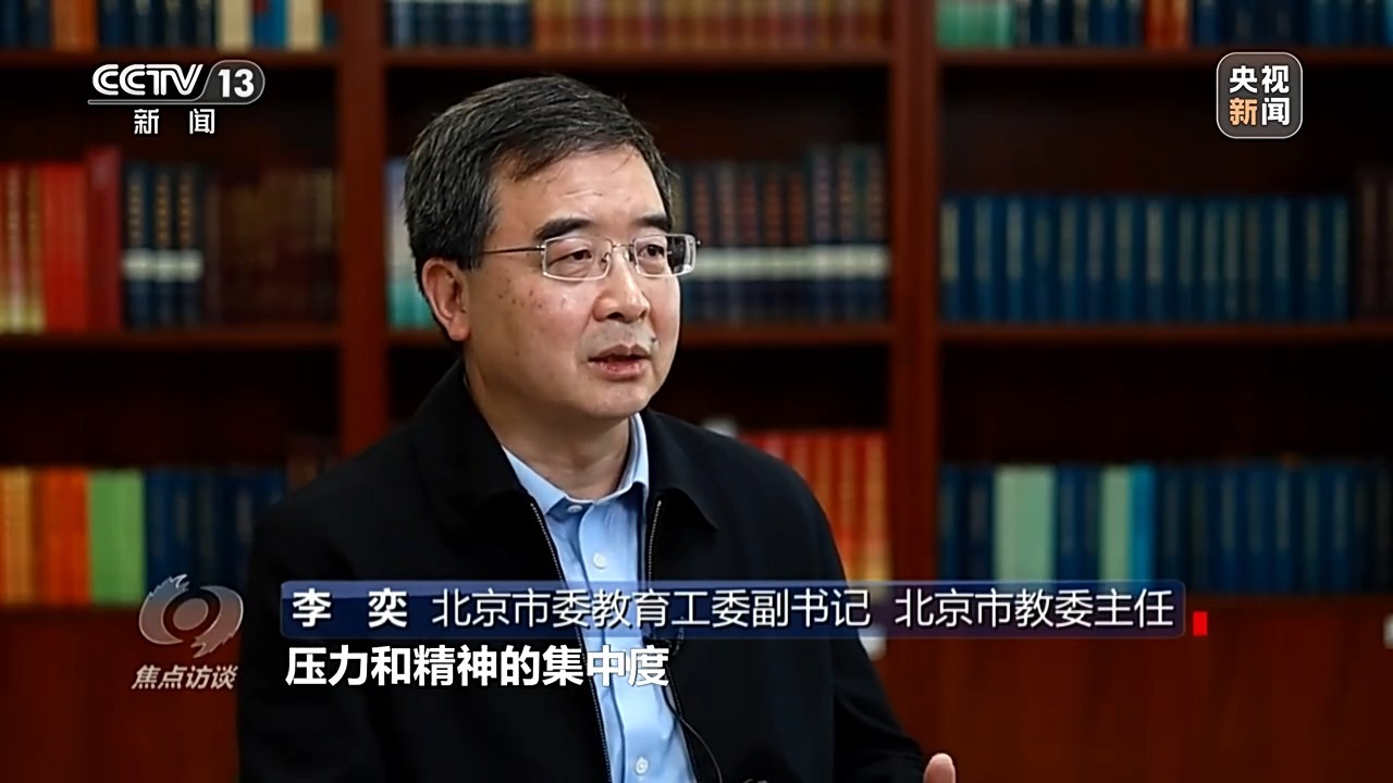 北京市委教育工委副书记、北京市教委主任 李奕:社会呼声比较大,说现在孩子比较疲劳。另外,现在课堂上教学的内容以及现代化设备和素材的选用,都比以往的容量确实是要加大了。所以孩子在课堂内的感受、压力和精神的集中度比以前要增长了好多。同时又由于生源的增长,活动的空间都显得相对局促,需要实事求是地做一些调整。