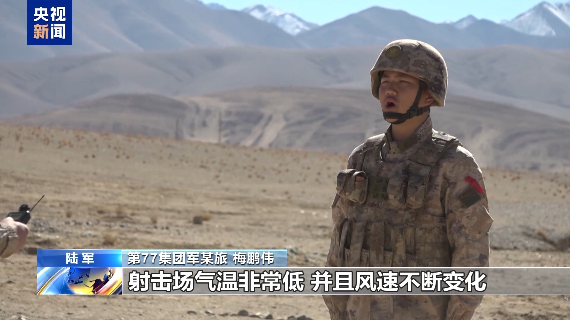 第77集团军某旅 梅鹏伟:射击场气温非常低,并且风速不断变化,为考核增加了难度。射手需要克服自然环境影响,及时判别风向,根据风速不断地修正瞄准点,确保一击命中。