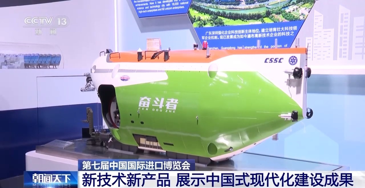 进博会期间,中国馆里一直热闹非凡。“奋斗者”号模型、5G智慧机场、30微米柔性可折叠玻璃、活性免水洗印染一体机……这些来自未来网络、深海空天、新能源等多个领域的新产品、新服务、新技术令现场观众目不暇接。