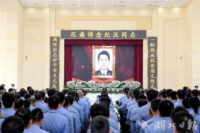 “一腔热血拭金盾无怨无悔,满怀壮志护平安义无反顾”。9月17日,纪汉同志的遗体告别仪式在汉口殡仪馆举行,赶来送他最后一程的人们无不扼腕叹息:群众失去了一个好民警,同事失去了一个好战友,妻子失去一个好丈夫,孩子失去了一个好爸爸。