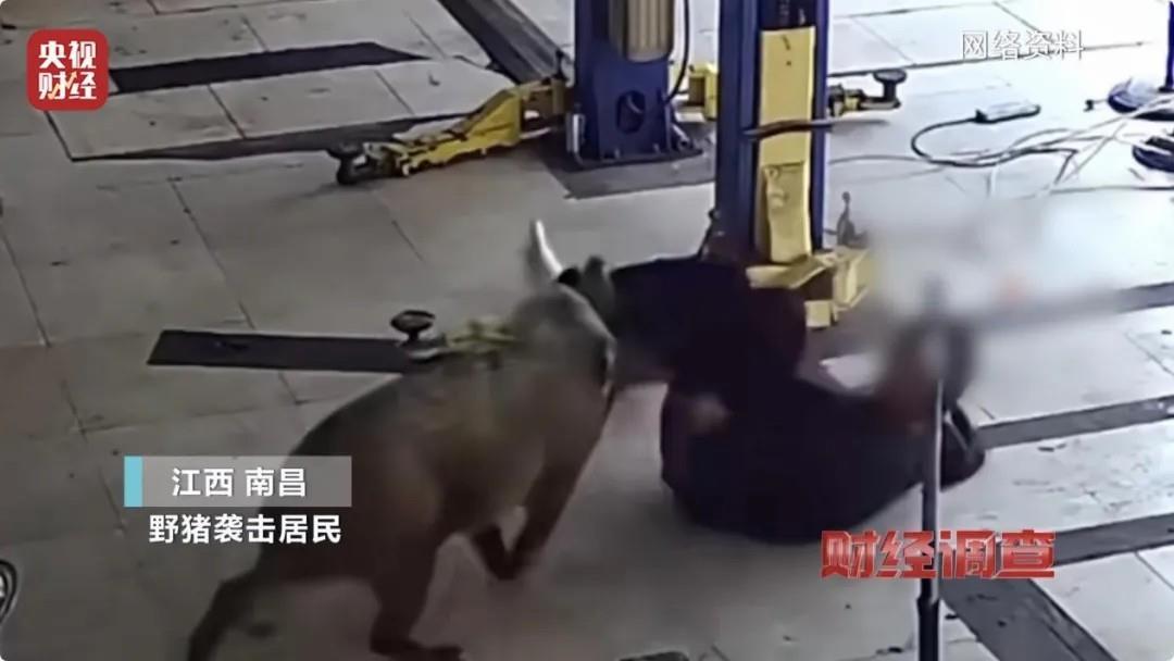 2024年10月25日,江西省南昌市进贤街一汽修店内,一男子被野猪袭击。野猪从汽修店出来后冲进一户民居,导致两位老人受重伤。事发后当地组织警力将野猪击毙。