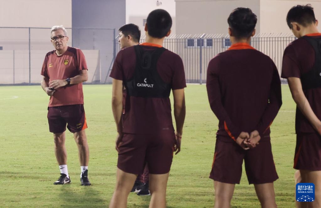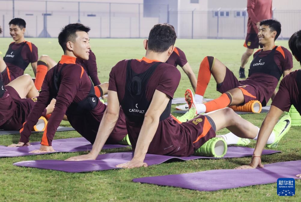 11月12日,中国国家男子足球队成员在巴林麦纳麦进行赛前训练。新华社记者 王海洲 摄