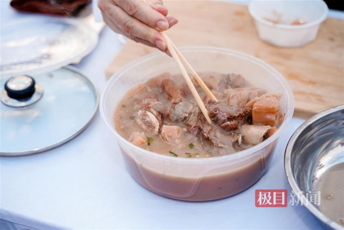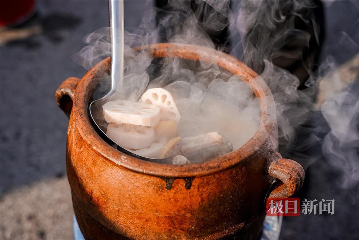 “要想煨出一锅好汤,食材和火候都是有讲究的。”许建中告诉极目新闻记者,煨汤的调料很简单,只需盐和胡椒粉;食材一般选用洪湖、蔡甸、嘉鱼等地的9孔莲藕,撒盐腌制十分钟后再下锅,排骨中要加入筒子骨、五花肉,才能煨出粉糯香甜又浓郁的汤。