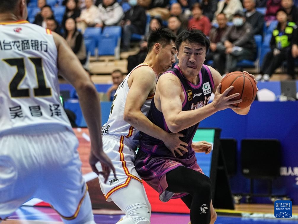 11月13日,浙江稠州金租队球员刘泽一(右)在比赛中突破。新华社记者 朱峥 摄
