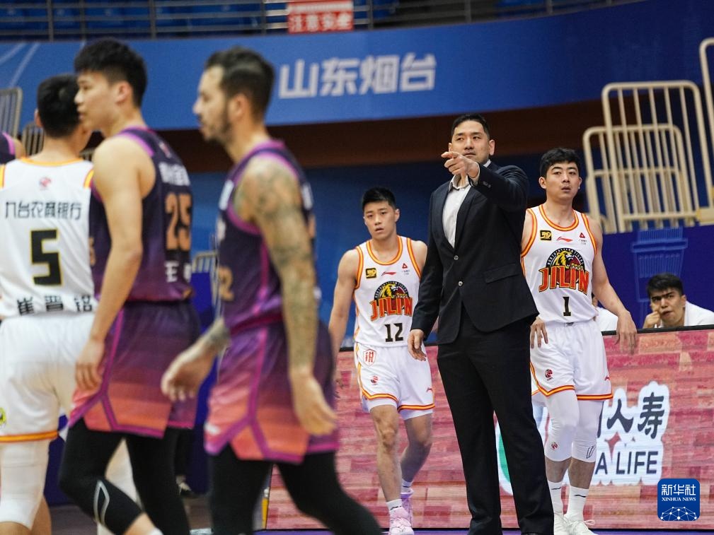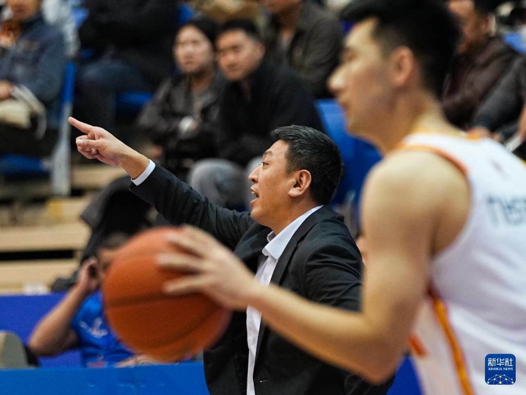 11月13日,吉林九台农商银行队主教练钟诚在比赛中指挥。新华社记者 朱峥 摄