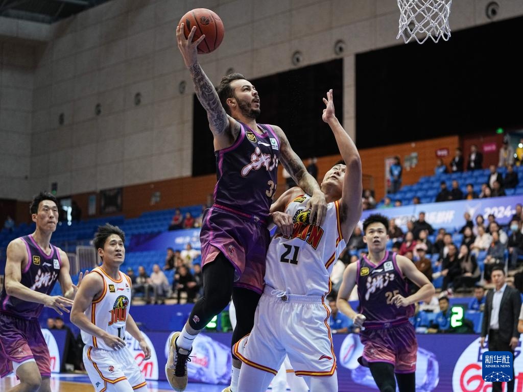 11月13日,浙江稠州金租队球员刘泽一在比赛中上篮。新华社记者 朱峥 摄