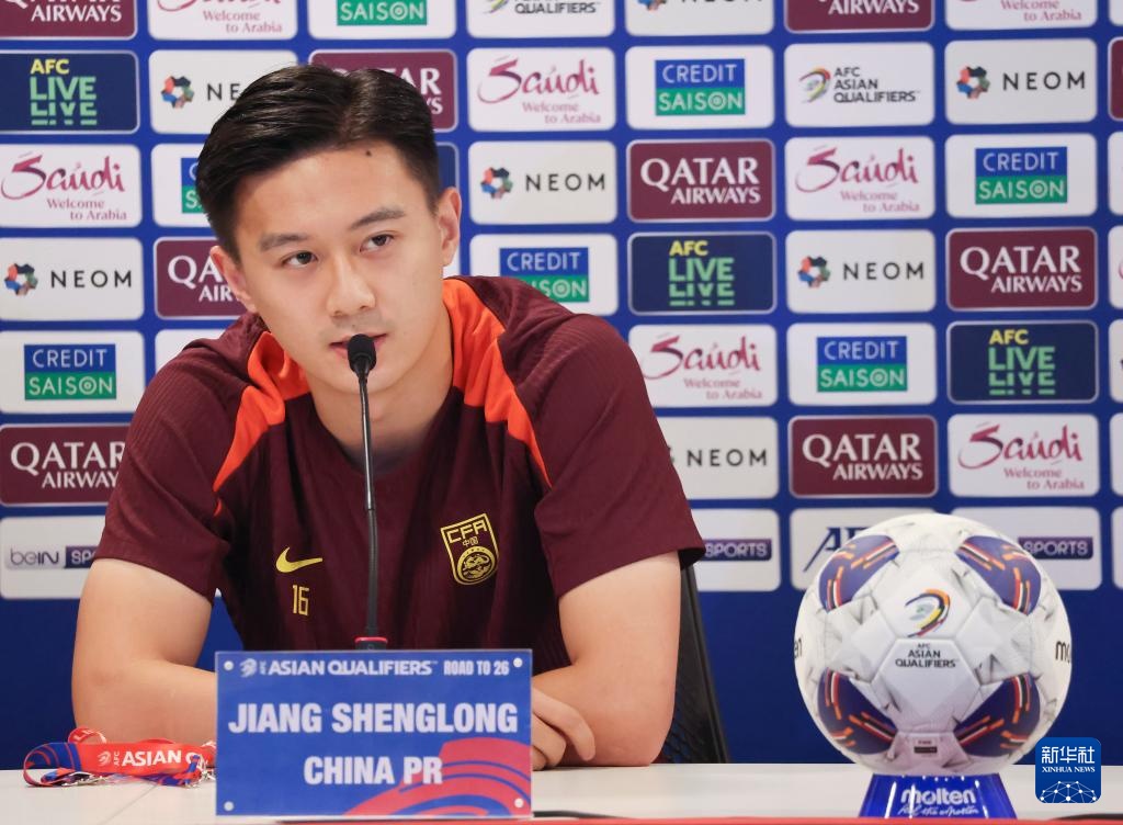 11月13日,中国队球员蒋圣龙在赛前新闻发布会上。新华社记者 王海洲 摄