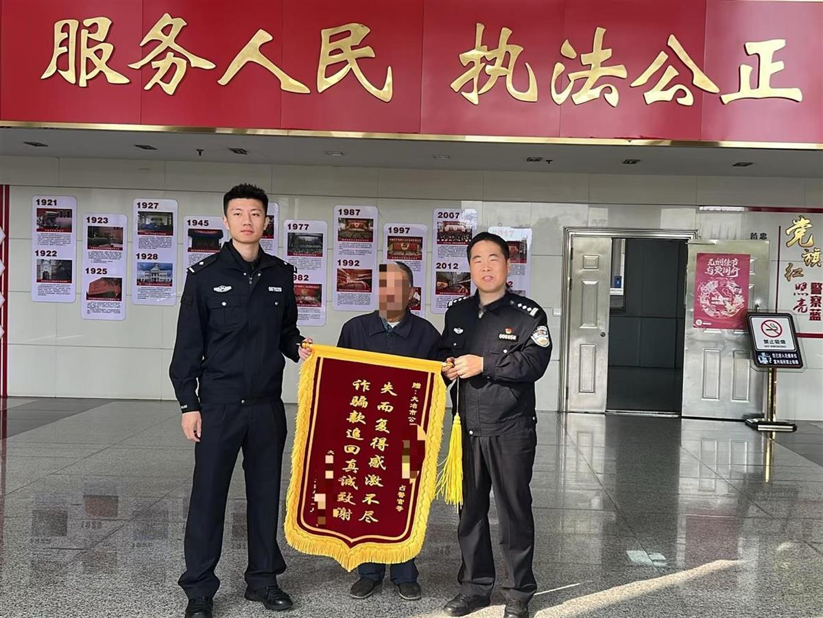 大冶市居民为民警送来锦旗,感谢其帮助追回被骗的10万元