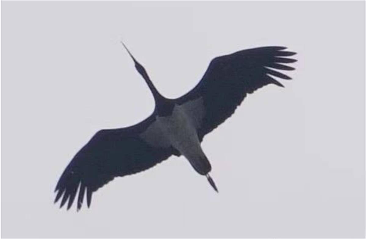 10月12日,武汉观鸟协会会员朱全宇记录到1只黑鹳飞过沙湖地区;10月16日,宋祥干在天兴洲记录到7只黑鹳。黑鹳连续十一年来到长江天兴洲越冬,到月底最大个体数量达38只。