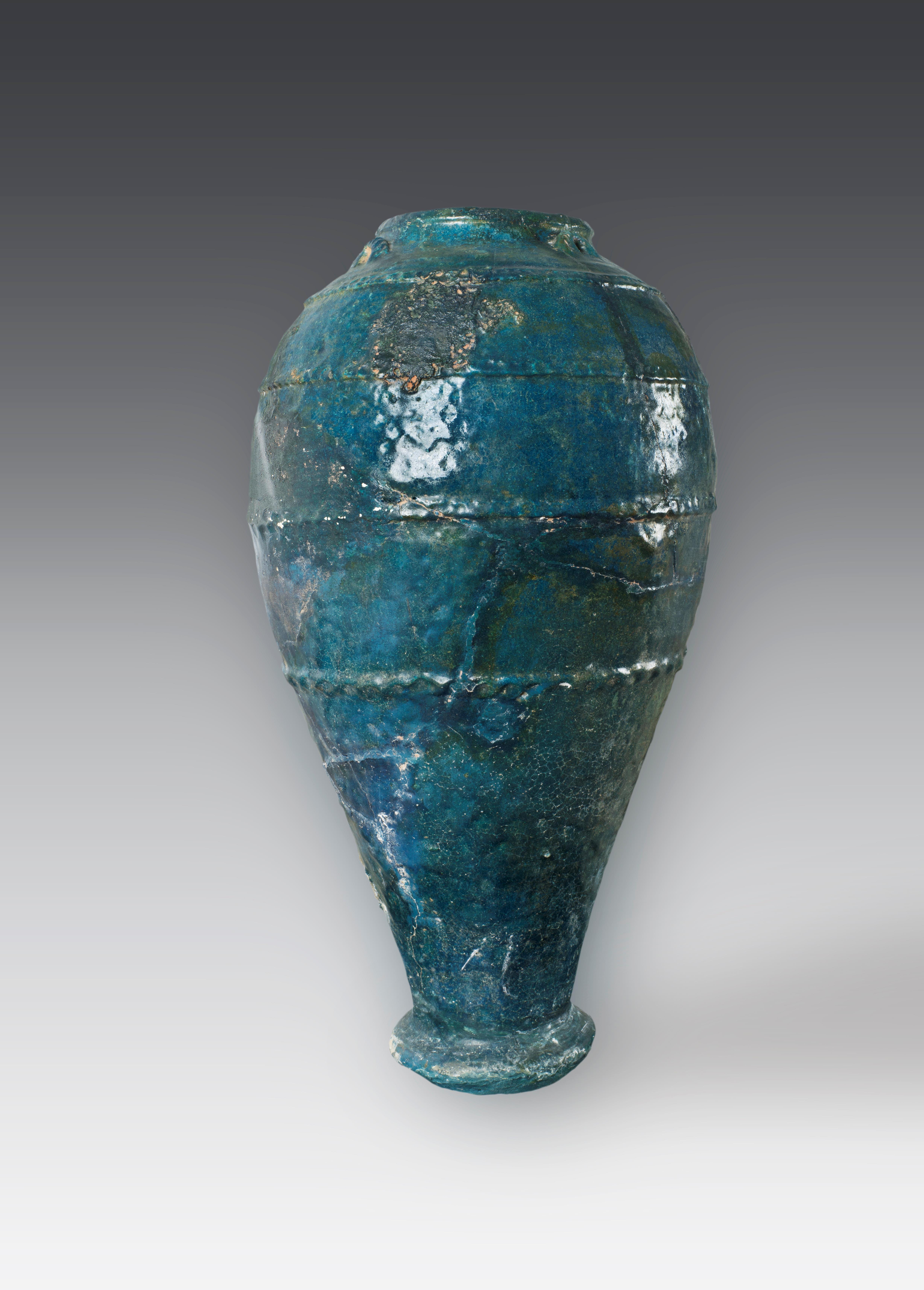 如这件来自古代波斯的孔雀蓝釉陶瓶