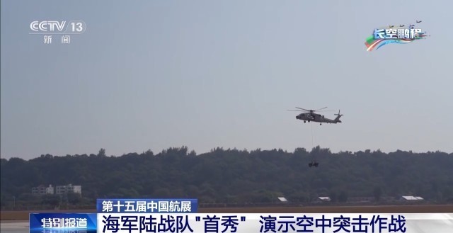 第十五届中国航展是海军陆战队员首次参加,除了演示舰载直升机飞行课目,还有搭载全地形山猫突击车及多名陆战队员进行快速突击,夺控敌目标的课目。