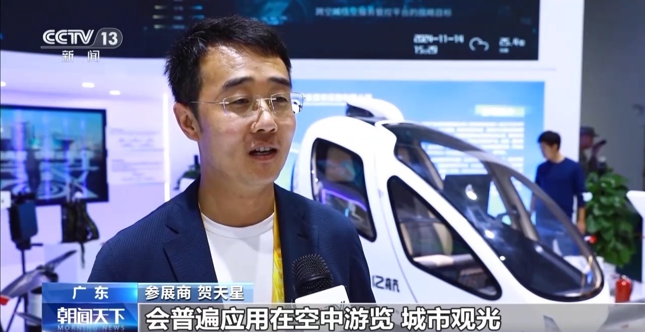 参展商 贺天星:这款无人驾驶的载人航空器,会普遍应用在空中游览、城市观光、交通接驳、空中通勤,还有物流运输、应急救援这样不同的应用场景。
