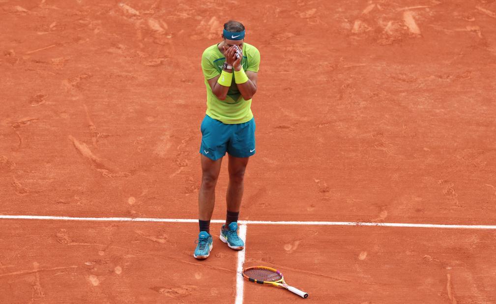 2022年6月5日,纳达尔庆祝法网夺冠。新华社记者 高静 摄