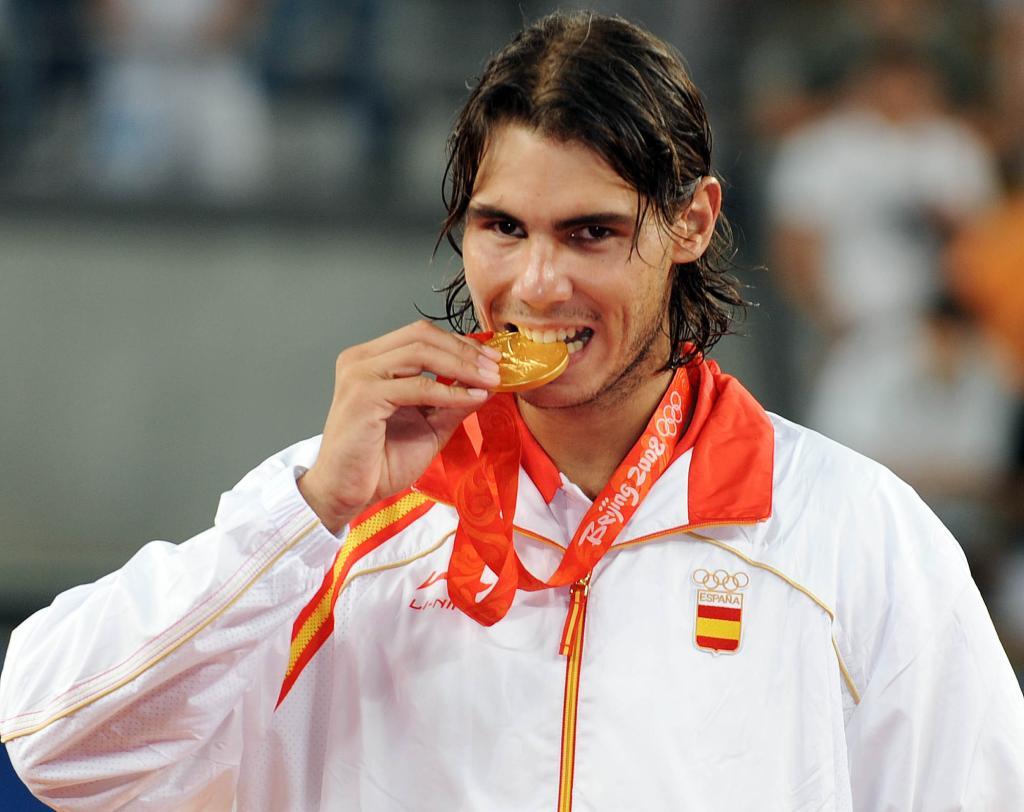 2008年8月17日,在北京奥运会网球男单决赛中,西班牙选手纳达尔以3:0战胜智利选手冈萨雷斯,夺得冠军。 新华社记者 邹峥 摄