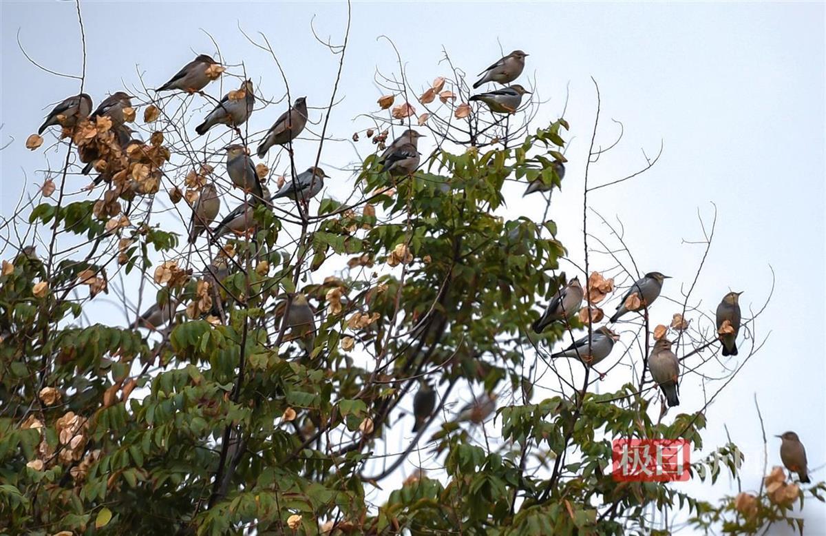 公园上空出现了令人震撼的一幕。成群结队的鸟儿在空中飞舞,它们或盘旋、或俯冲,场面蔚为壮观。这些耐不住性子的冬候鸟与外出觅食的留鸟交织在一起,形成了密密麻麻的鸟阵,在都市丛林的映衬下,这一景象更显得震撼人心。