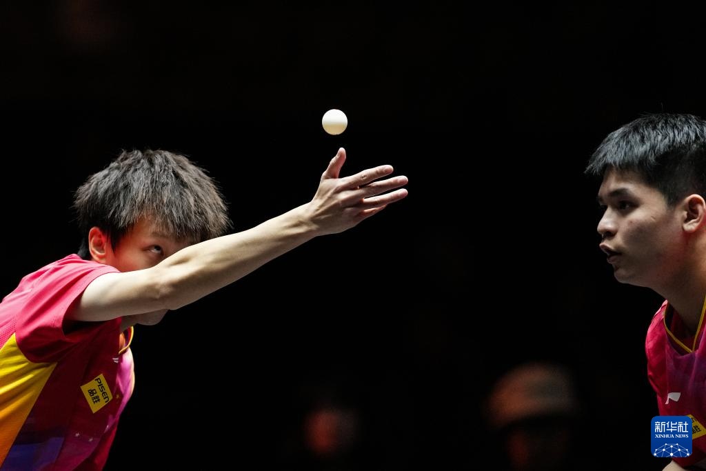 11月20日,中国组合林高远(右二)/林诗栋(右一)在比赛中。
