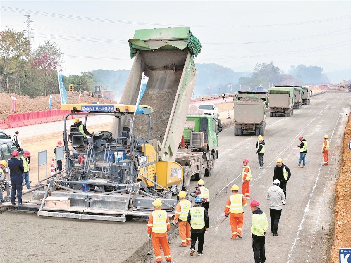 楚天都市报极目新闻讯(记者梁传松 通讯员王可)11月20日,武黄高速公路改扩建项目施工现场机械轰鸣,随着摊铺机匀速前行,一条崭新的灰黑色“长地毯”铺筑完成,标志该项目首段路面底基层试验段摊铺完成,并进行路面工程施工阶段,为后续早日建成通车奠定坚实基础。