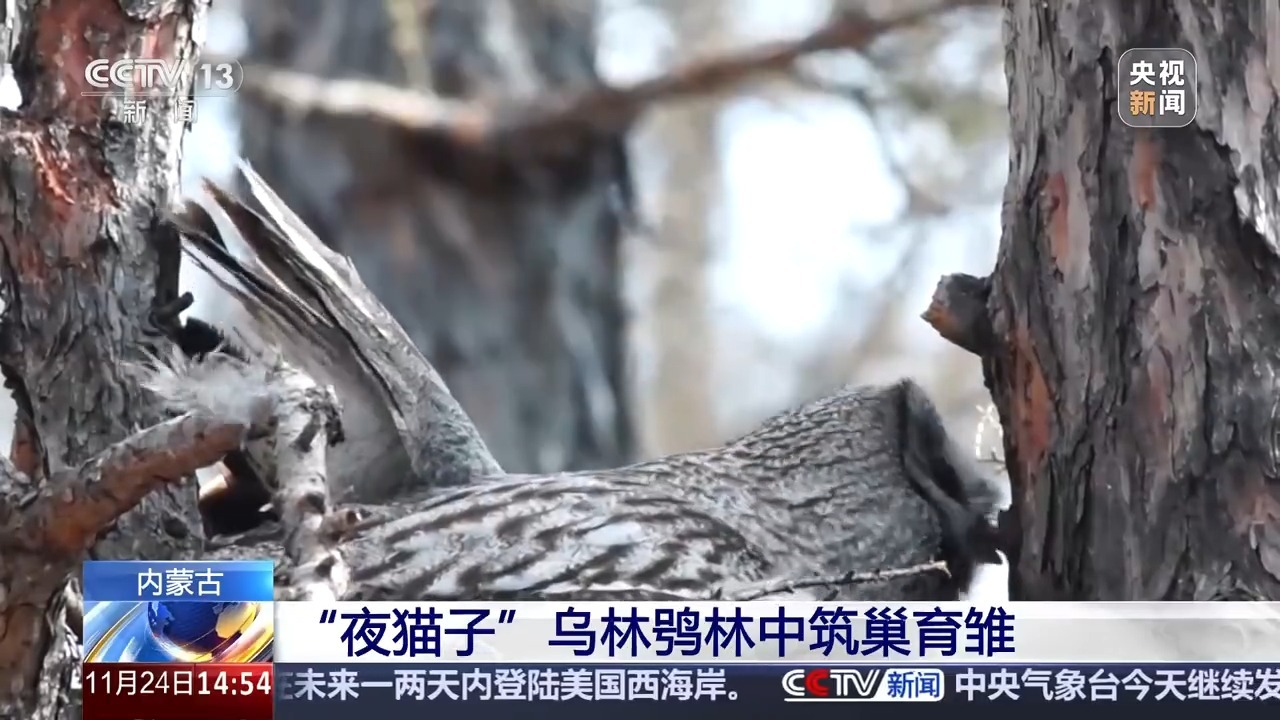 汗马国家级自然保护区管理局科研监测工作人员 李文良:它们善于伪装自己,利用羽毛的颜色、形态来隐藏身形。同时也会选择在高大的树上筑巢,以远离地面的威胁。在飞行时,乌林鸮也会时常保持着高度的警觉,一旦发现有天敌靠近,就会迅速逃离。乌林鸮的天敌主要是一些大型的猛禽和哺乳动物,比如金雕、猞猁等。