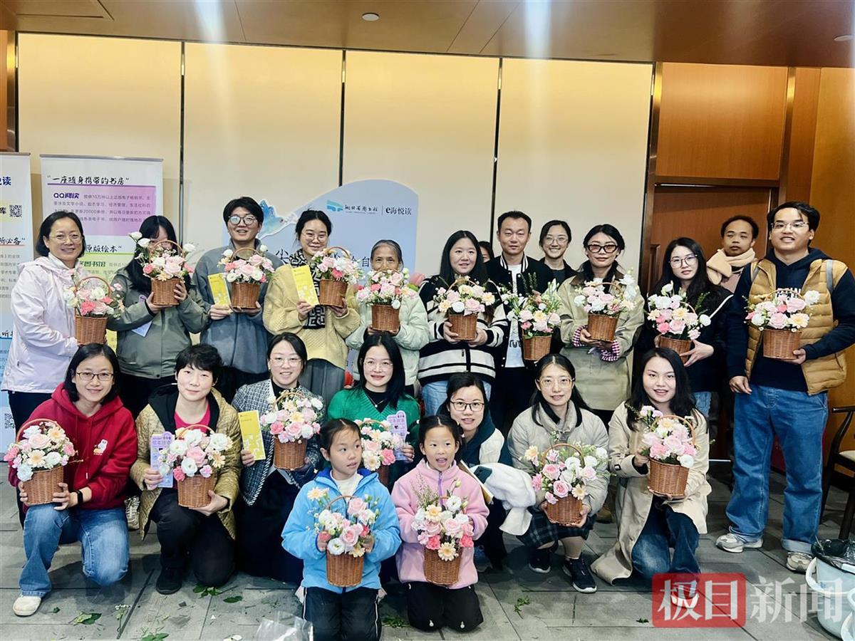在光谷书房·未来城分馆,花香弥漫、书香满屋。湖北数字图书馆馆员向读者们推荐了《人间草木》《古典植物园》《怎样观察一棵树》和《室内绿植搭配与养护完全手册》等许多饱含自然、美学的经典好书,并给现场读者带去27本免费电子书,通过微信扫描二维码,即可一键开启阅读之旅,让读者们在阅读中感受自然的魅力和艺术的疗愈力量。现场,读者们学习用绿植装扮家居空间,体验了插花艺术,直接把书中学到的美学知识付诸实践。