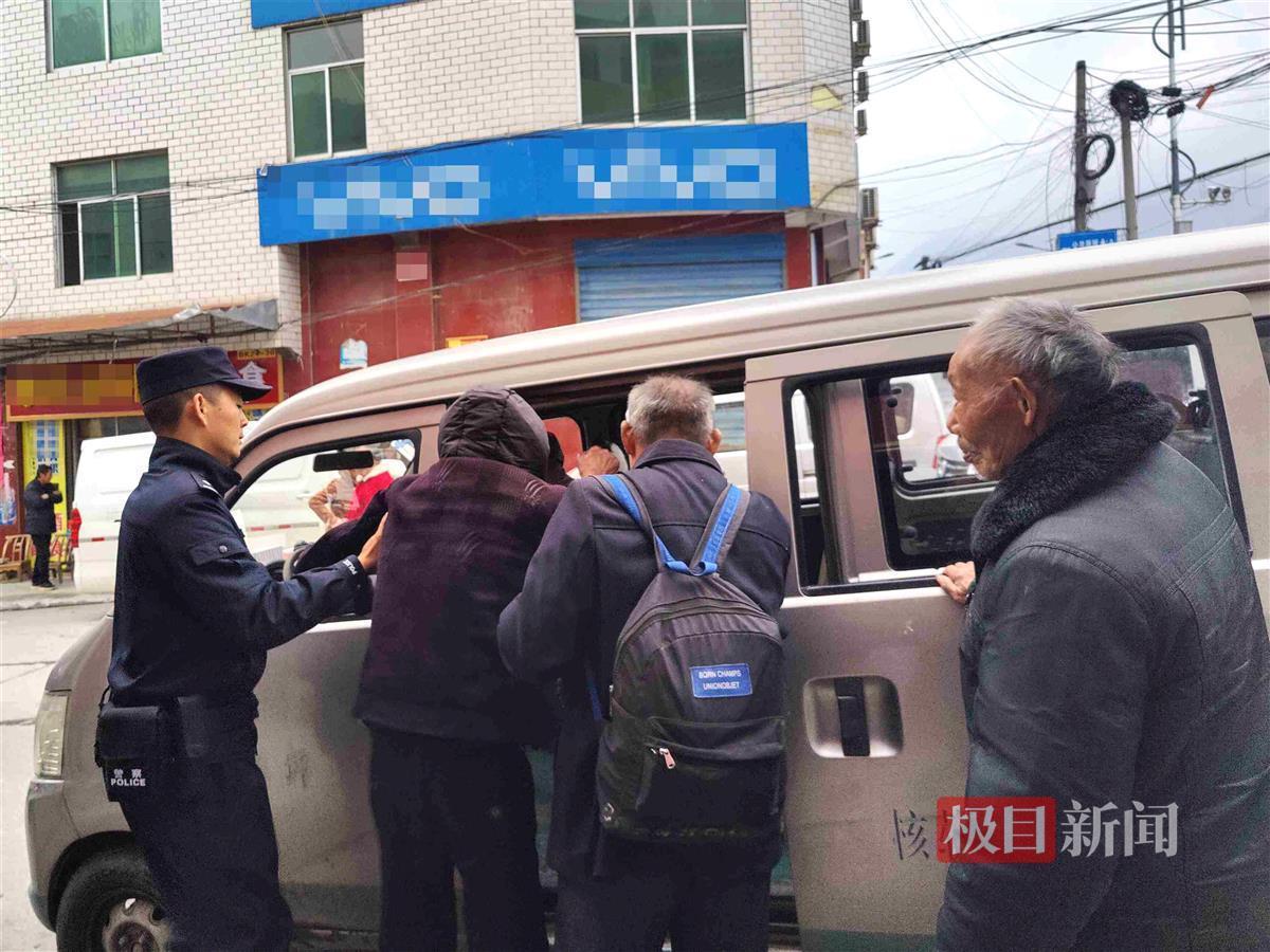 警民搀扶老伯上车(视频截图)