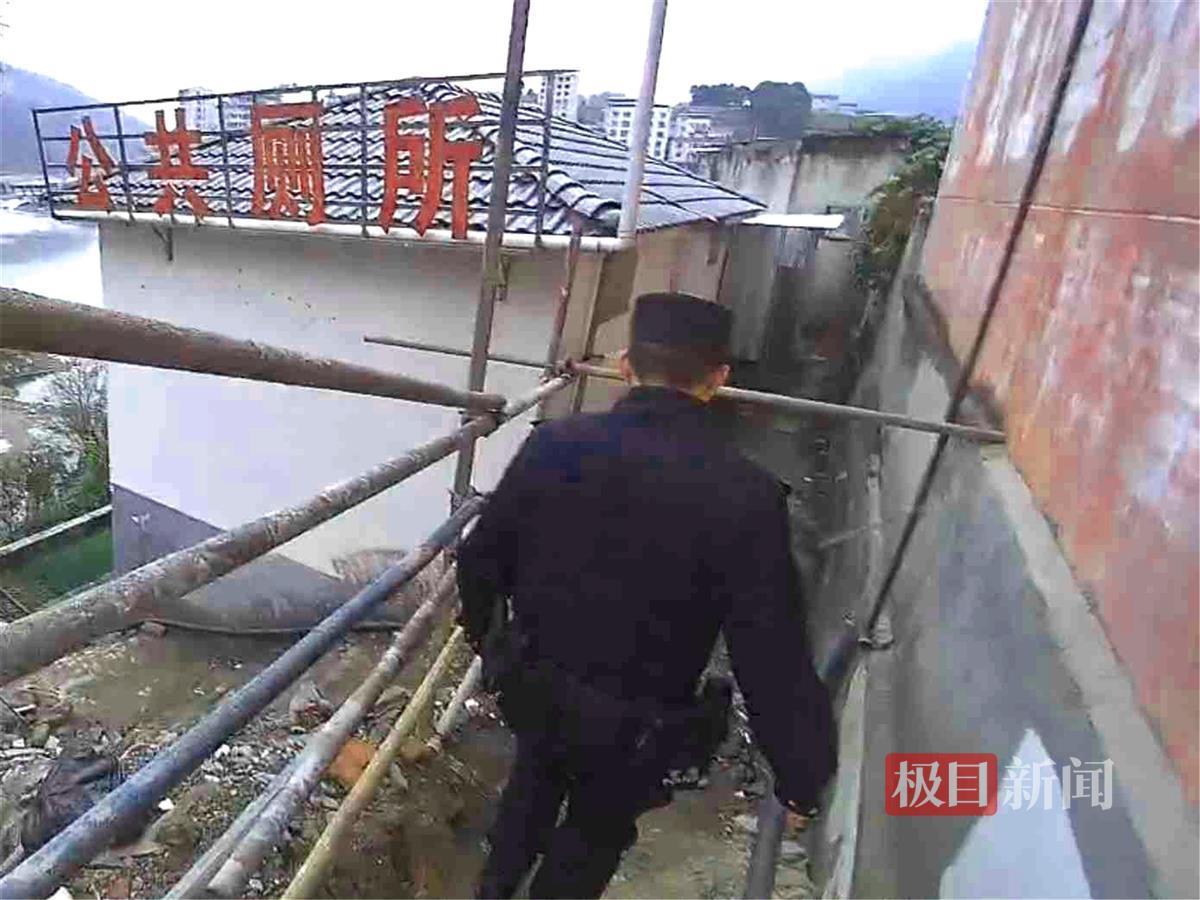 11月24日10时,正驱车在保康县寺坪镇街头巡逻的民警辛传鹏、彭珊旭接到寺坪派出所出警指令,有位老人摔倒在鳝鱼河桥头公共厕所,需要救助。